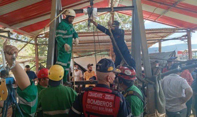 Desde el lunes, los Bomberos de Roscio trabajaban en el drenaje del agua y en la extracción de los cuerpos atrapados dentro de la mina.