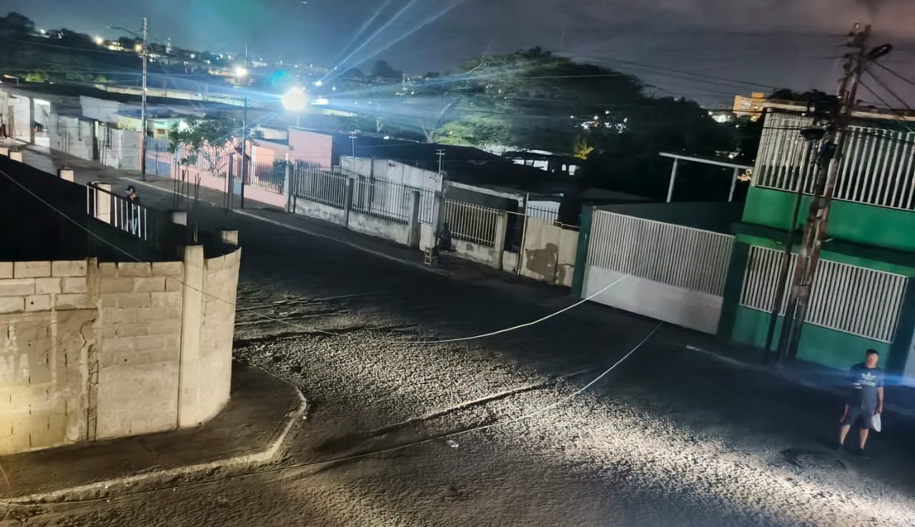 Las guayas obstaculizan el paso vehicular a una de las calles principales de la localidad y están electrificadas.