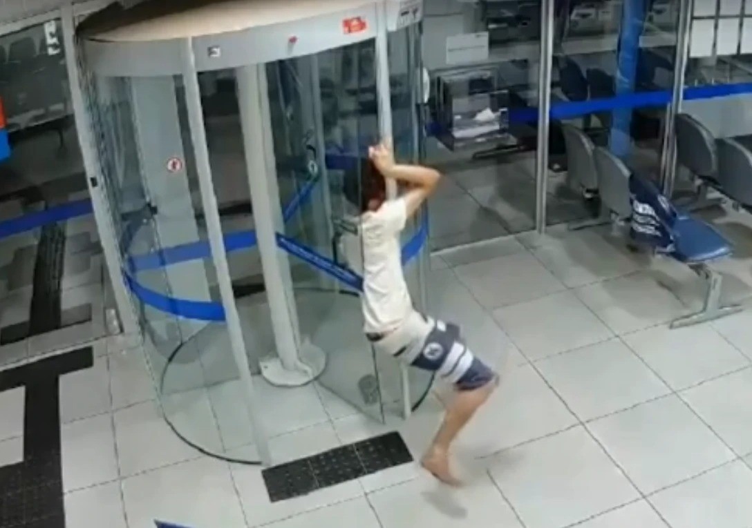 Un joven intentó robar un banco en Minas Gerais, en Brasil, pero la maniobra no le salió como esperaba, ya que terminó atrapado en la puerta giratoria del local y las imágenes se volvieron virales.