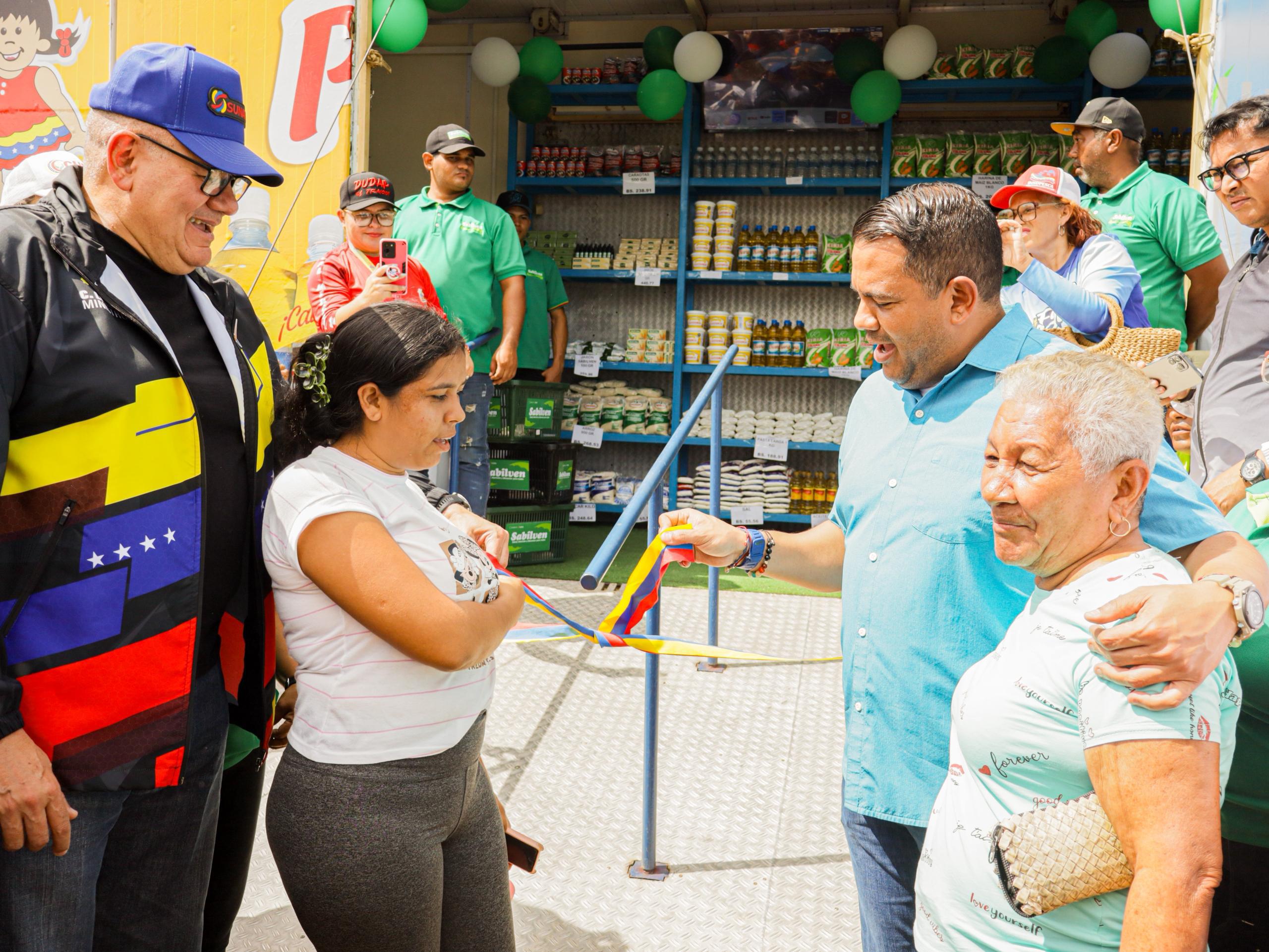El gobernador Víctor Clark, junto al Ministro del Poder Popular para la Alimentación, M/G Leal Tellería y el poder popular, celebraron este nuevo logro de la Revolución, que llevará alimentos a precios por debajo del 40 a 70 % en comparación con el mercado tradicional.