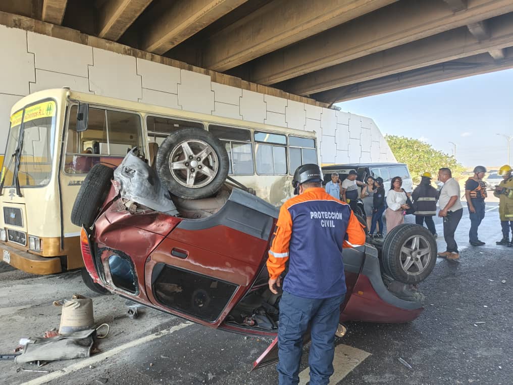 Conductor de un vehículo se volcó tras causar una colisión múltiple en la intercomunal Alí Primera