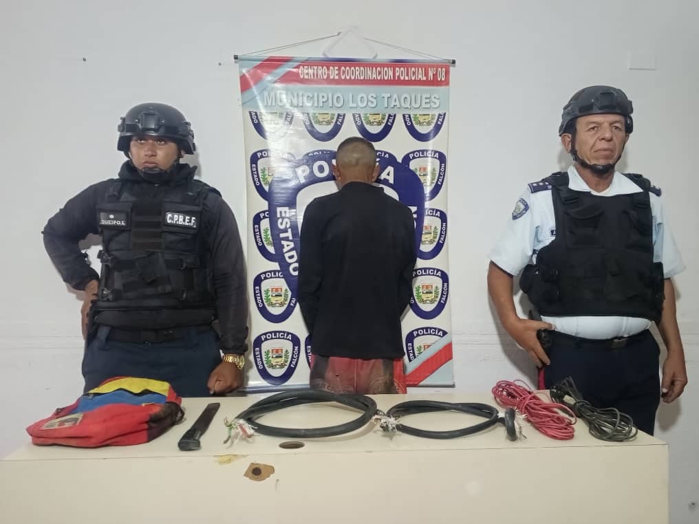 Los Taques, estado Falcón.- La Policía de Falcón capturó a un hombre de forma infraganti cuando sustraía cables de la planta desalinizadora, ubicada en la vía principal de Villa Marina, municipio Los Taques.