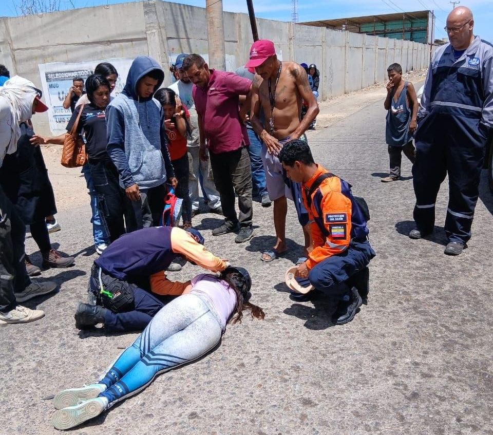 Protección Civil atendió el accidente y la trasladó al hospital Doctor Rafael Calles Sierra de Punto Fijo donde quedó identificada como Yesimaf Miquilena de 23 años, presentó politraumatismos generalizados y escoriaciones en el abdomen por lo que quedó recluida.