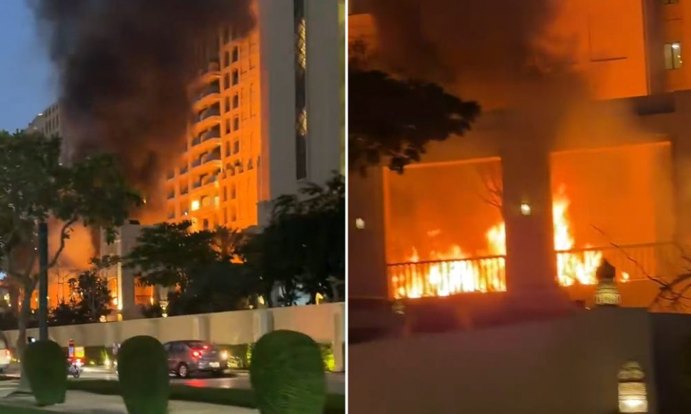 Un incendio afecta el territorio del lujoso hotel Fairmont The Palm en Dubái, Emiratos Árabes Unidos, en medio de la escalada bélica en la región, tras...