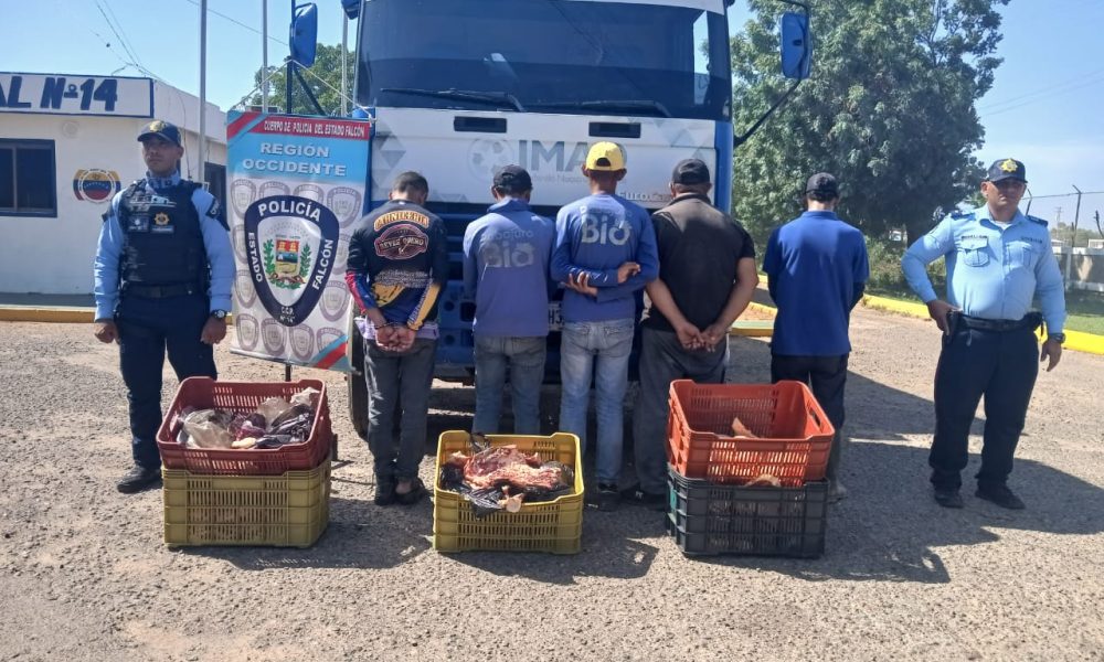 Municipio Dabajuro, estado Falcón.-Cinco hombres fueron capturados por la Policía de Falcón tras ser sindicados de cometer un hurto en la carnicería Inversiones Reyes Quero, ubicada...